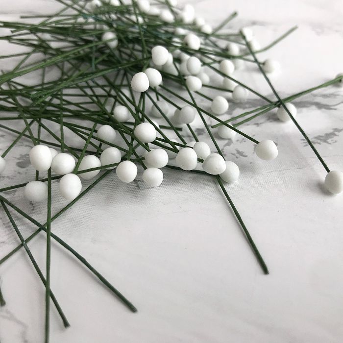 На основании каждой палочки крепим небольшую горошину из мастики. Это будет серединка будущей гортензии.