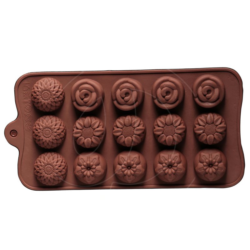 Форма силиконовая для шоколада "Цветы микс" 15 шт
