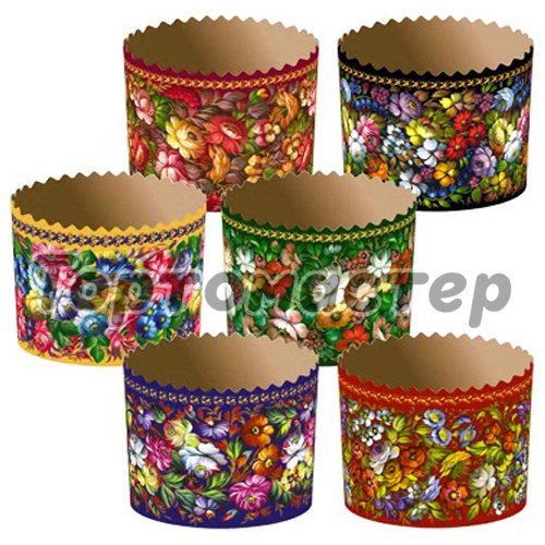 Представляют собой одноразовые формы из специальной бумаги с рисунком для выпечки и последующего хранения куличей. Формы выдерживают температуру выпечки до +230 С. Рекомендуемая температура выпечки куличей - +170-180С. Не требуют предварительной смазки.