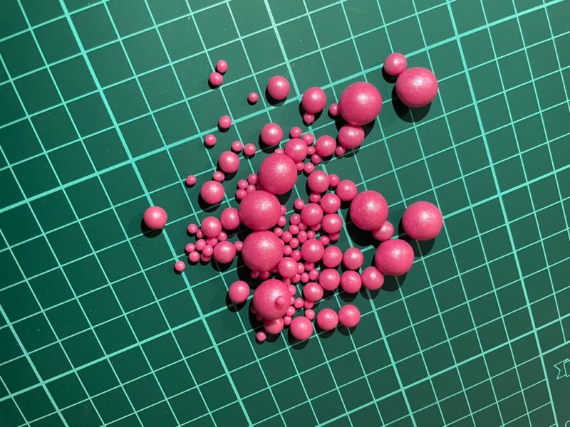 Мягкая злаковая посыпка, жуётся очень легко, зубы точно не сломаете, такой посыпкой можно смело украшать детские торты без боязни потерять зубы. Вкусная, но, если разгрызать самые большие шарики, то может показаться немного приторной, чересчур сладкой. У посыпки очень нежный розовый цвет. Мне нравится, что это микс, т.е. в упаковке у вас и большие шарики (~1 см), и средние (~5мм), и совсем маленькие (~3мм).