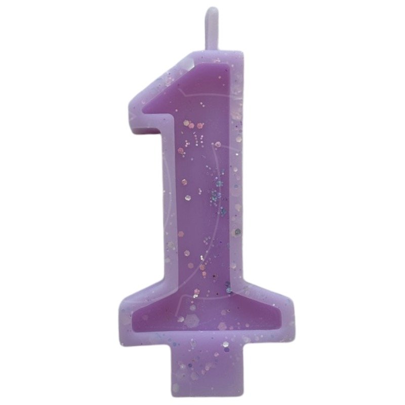 Свеча декоративная Цифра "1" Сиреневая с блёстками