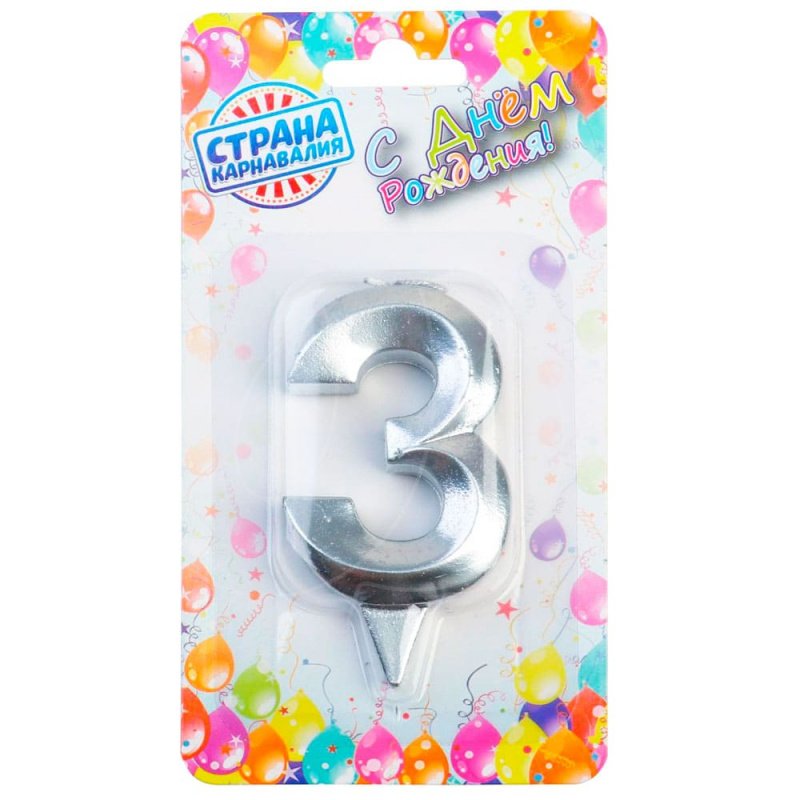 Доставка Свеча декоративная Цифра "3" Грань Серебро из магазина в вашем городе: