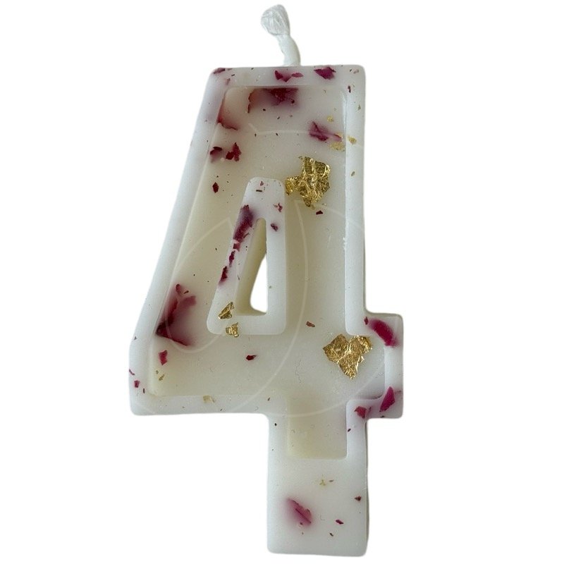 Доставка Свеча декоративная Цифра "4" Белая с розой и поталью из магазина в вашем городе: