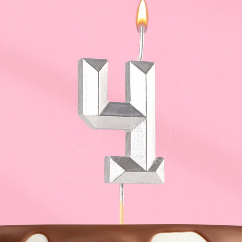 Доставка Свеча декоративная Цифра "4" Серебряная грань из магазина в вашем городе: