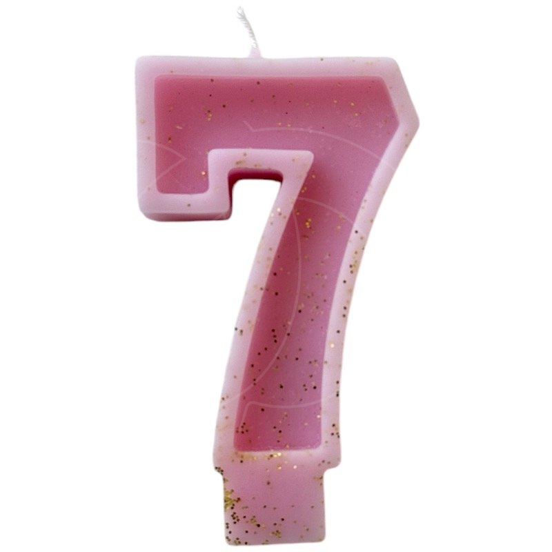 Доставка Свеча декоративная Цифра "7" Розовая с блёстками из магазина в вашем городе: