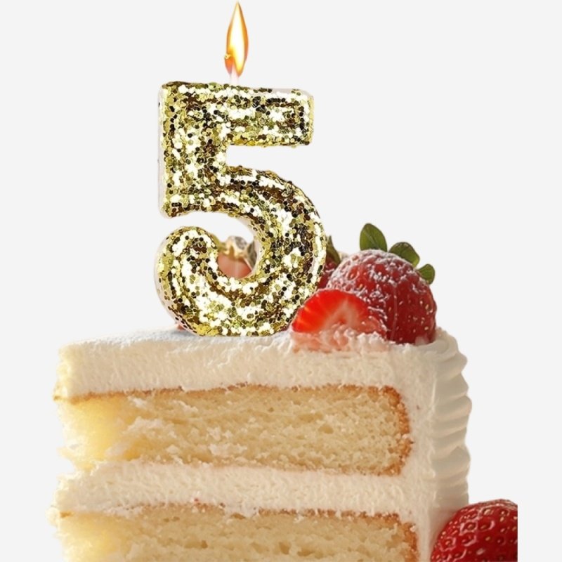 Свеча декоративная Цифра "5" Золотые пайетки