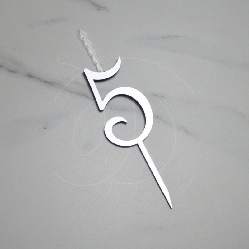 Свеча-топпер декоративная акриловая Цифра "5" Серебро