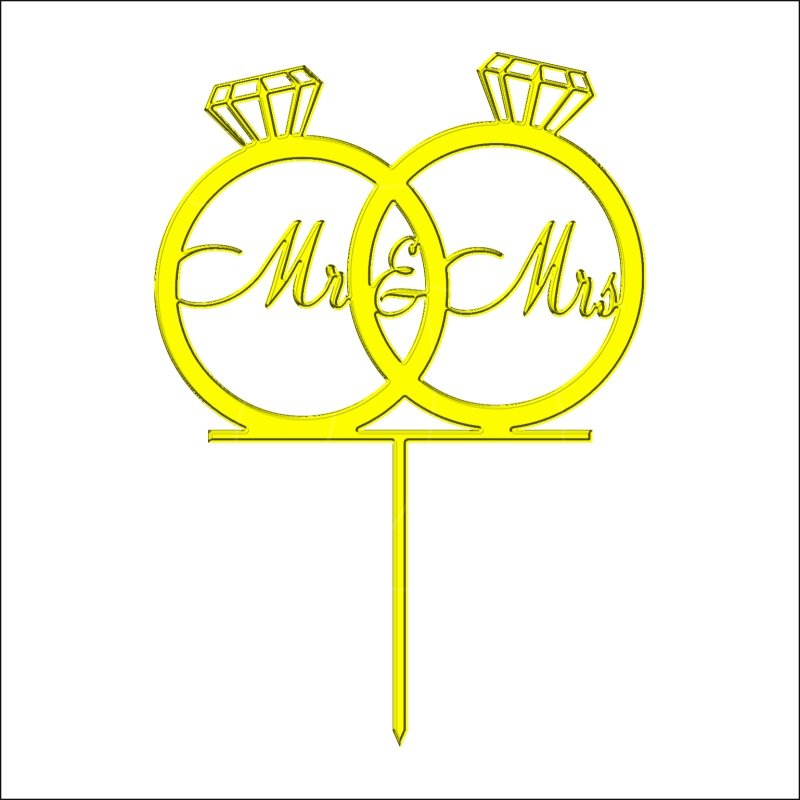 Доставка Топпер декоративный акриловый "Свадебные кольца "Mr&Mrs" на палочке" Золотой 10х8 см из магазина в вашем городе: