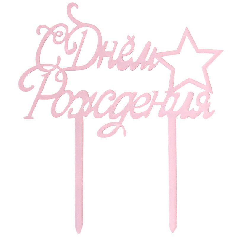 Доставка Топпер декоративный акриловый "С Днём Рождения" Розовый из магазина в вашем городе: