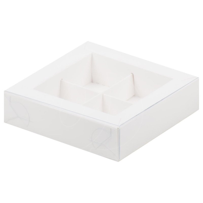 Доставка Коробка на 4 конфеты с прозрачной крышкой белая 12х12х3 см из магазина в вашем городе:
