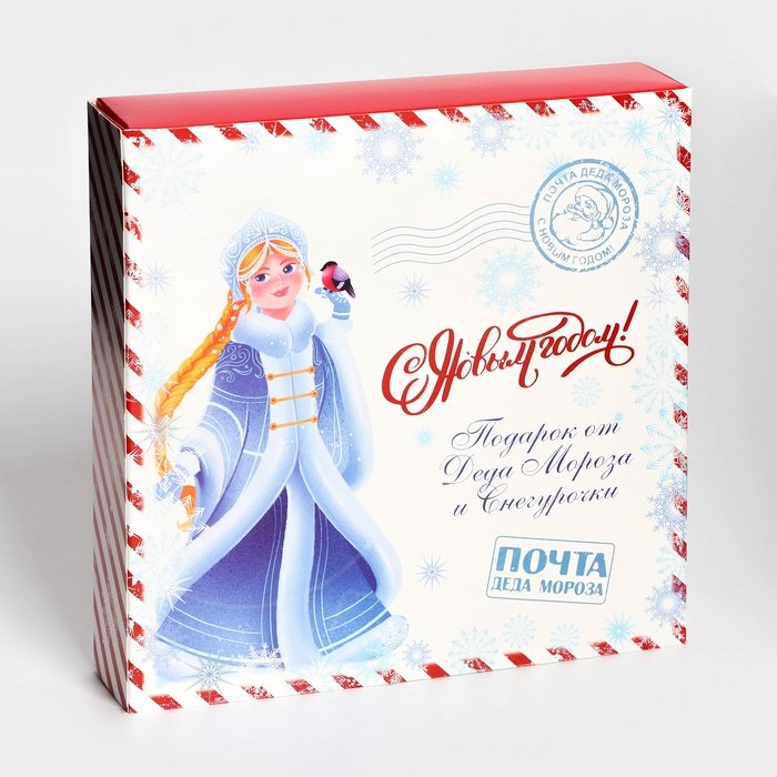 Доставка Коробка на 8 конфет и плитку шоколада с окном "Новогодняя посылка" 17,7х17,8х3,8 см из магазина в вашем городе: