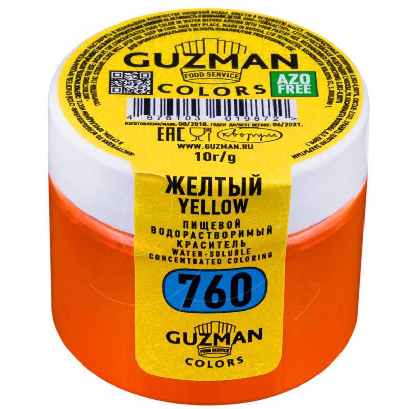 Доставка Краситель пищевой сухой водорастворимый GUZMAN "Жёлтый 760" 10 г из магазина в вашем городе:
