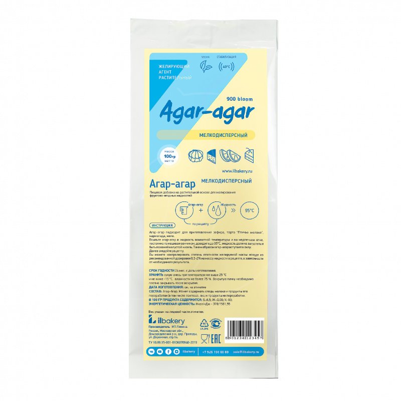Обожаю Il-bakery за качественные хорошие ингредиенты. Пользуюсь в работе только этим агаром, и пектин тоже беру от этой фирмы :)