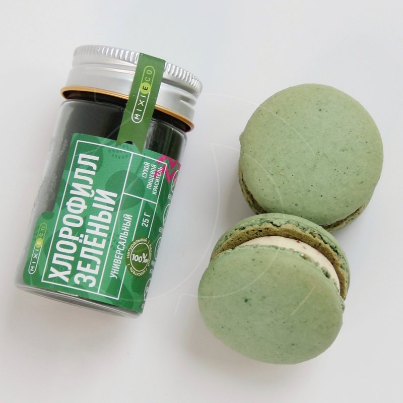 Окрашивайте ваши десерты с помощью натурального сухого пищевого красителя MIXIE «Хлорофилл зелёный» в насыщенные оттенки зеленого цвета.